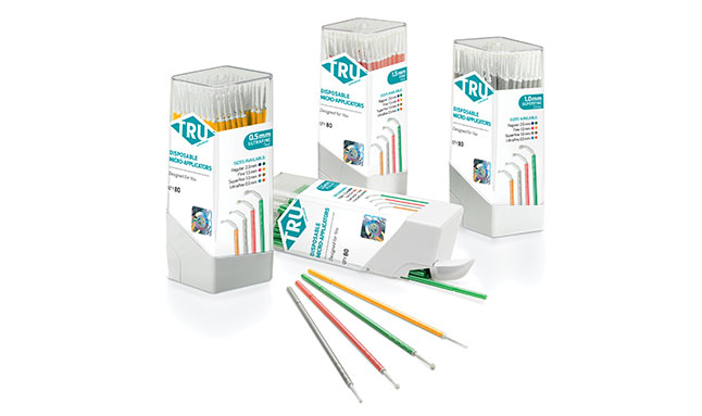 TRU™ by Microbrush® was developed based on feedback from clinicians. It is the first in Microbrush International’s extensive line of disposable applicators to feature a double-bending tip, a longer 12-centimeter handle and an Ultrafine 0.5-millimeter tip option.